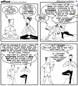 Yoga is about making the unconscious conscious and discovering our own patterns. Anger does a good job at pointing to those deeply ingrained patterns that might be hurting us. Take a good hard look at what really gets your goat. For me, it’s false accusations or perceived false accusations. If someone even suggests I may have perhaps been a little negligent about something, I find my breath quickening, and my mind obsessing. If I push anger away immediately or go on the defensive, I don’t get a good look at what those patterns are. Anger also gets us in touch with our own humanity. When we feel our own uncomfortable emotions, we hopefully have more empathy when we see someone else wrestling with their crap. It’s hard to feel yogier than thou, when you’ve just snapped at someone or are grumbling to yourself.